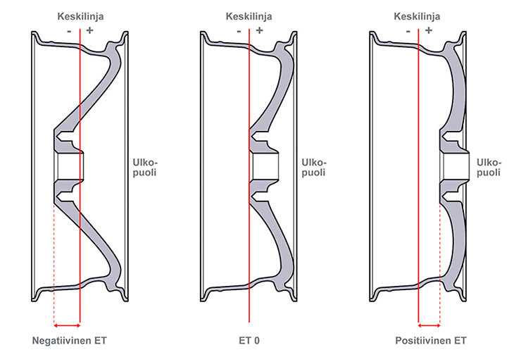 ET / Offset = Etäisyys vanteen kiinnityslaipasta vanteen keskilinjaan millimetreissä.